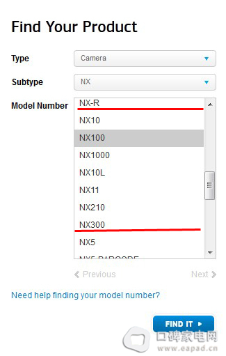 三星官方主页的产品支持目录选项上分别出现了两台最新款无反相机,型号分别是NX300和NX-R。